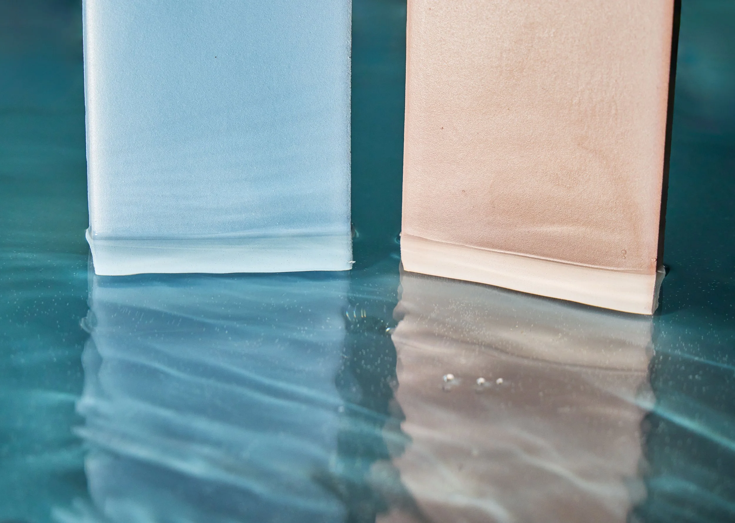The shoot translates these qualities into images through light, reflections, and clean, minimal compositions. Surfaces are presented to highlight depth and subtle color shifts, echoing the natural behavior of water.